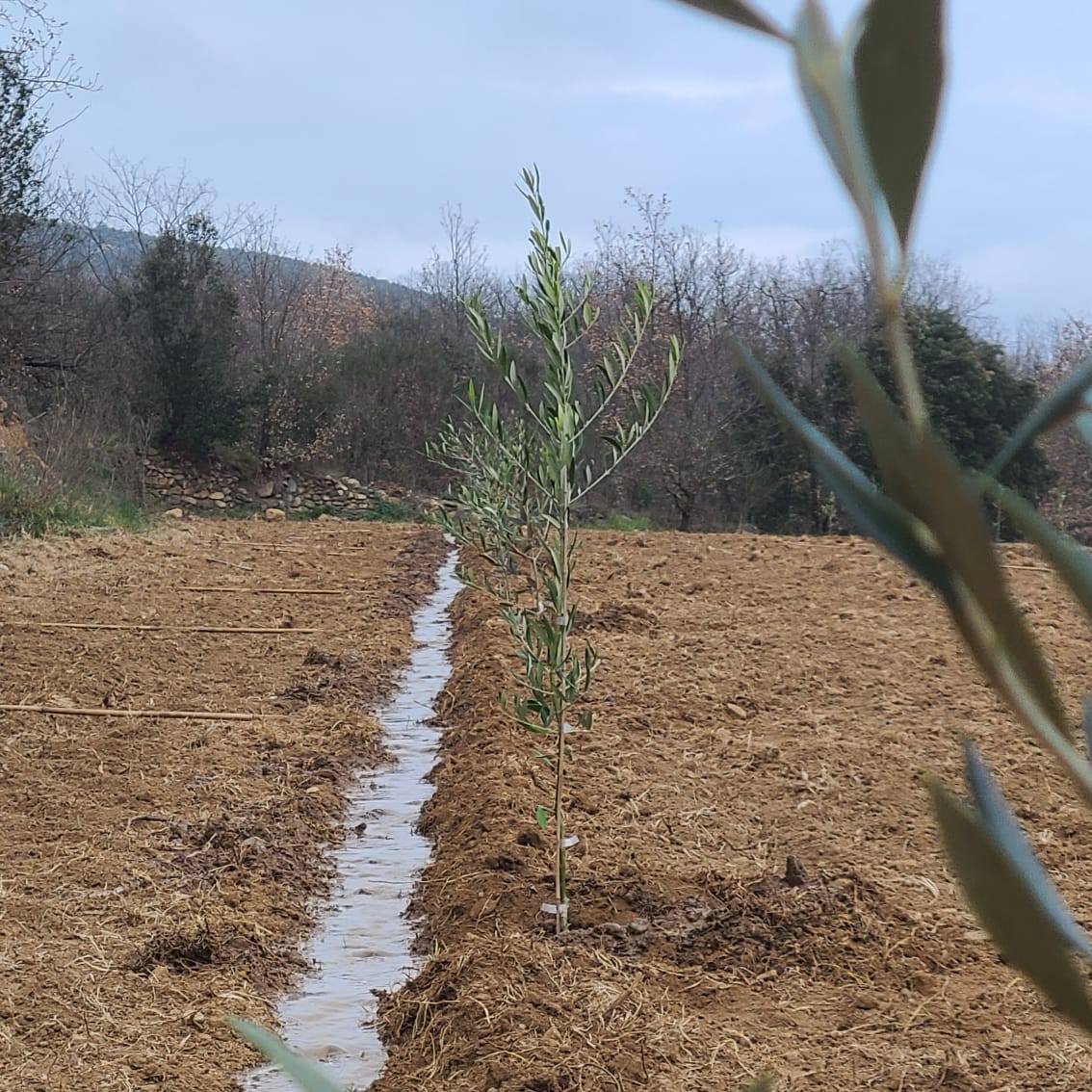 J’ai pu planter les oliviers à temps en février, bien aidée d’amies et de la famille, et de généreuses pluies les ont bien arrosés juste après la plantation. Timing parfait.